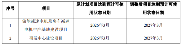 对于“储能减速电机及房车减速电机生产基地建设项目”延期原因,奕帆传动表示,通过资源整合与优化配置,公司有效提升了现有产能,目前已能够很好的满足客户订单需求。出于谨慎使用募集资金、逐步推进项目布局的原则,公司依据实际订单情况合理规划产能建设,因此将“储能减速电机及房车减速电机生产基地建设项目”达到预计可使用状态日期延期至2027年3月。原计划项目达到预计可使用状态日期为2026年3月。